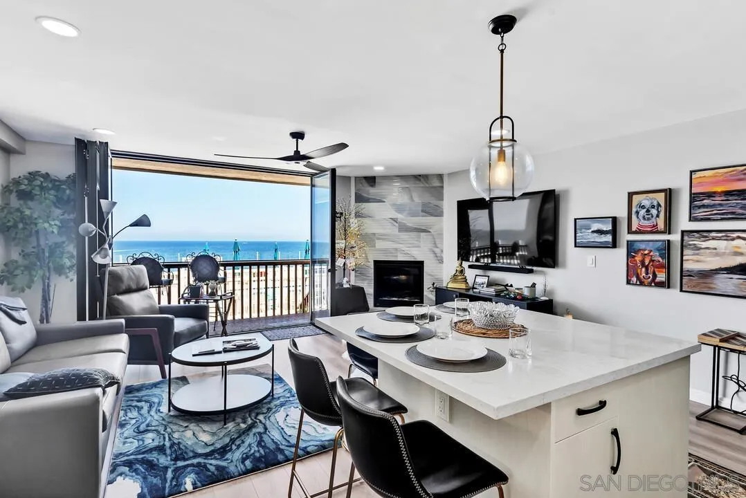 Welcome to your dream beachfront retreat! This exquisite 1 bedroom, 1 bath single level condo offers an unparalleled coastal living experience, boasting outstanding views of the ocean and pier with a small tucked away beach just steps away. This beautiful condo has been completely remodeled down to the studs, showcasing a seamless blend of modern luxury and beachside charm. Once inside, you'll be captivated by a wall of bifold glass doors that completely open up offering views of the ocean just past the pool area. The tastefully designed living area features a neutral color palette. Imagine enjoying the soothing sound of crashing waves while relaxing. The kitchen boasts stainless steel appliances, sleek cabinetry, and elegant countertops. The bathroom offers luxurious fixtures and finishes. Sunset Cove is located within walking distance to all that OB has to offer including the Pier, Newport Avenue and Sunset Cliffs also offers 1 assigned parking spot in the downstairs garage, extra storage and guest suites. Don't miss this incredible opportunity to own a meticulously remodeled beachfront condo with breathtaking ocean views. Whether you're seeking a peaceful getaway or a permanent residence, this one-of-a-kind condo is the epitome of coastal living at its finest.